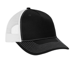 Fabric 100% cotton twill front panels and bill (Solids), 100% poly mesh back panels; 65/35 polyester/cotton twill front panels and bill (Heather Grey)